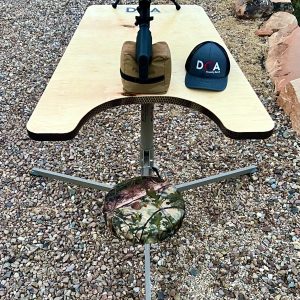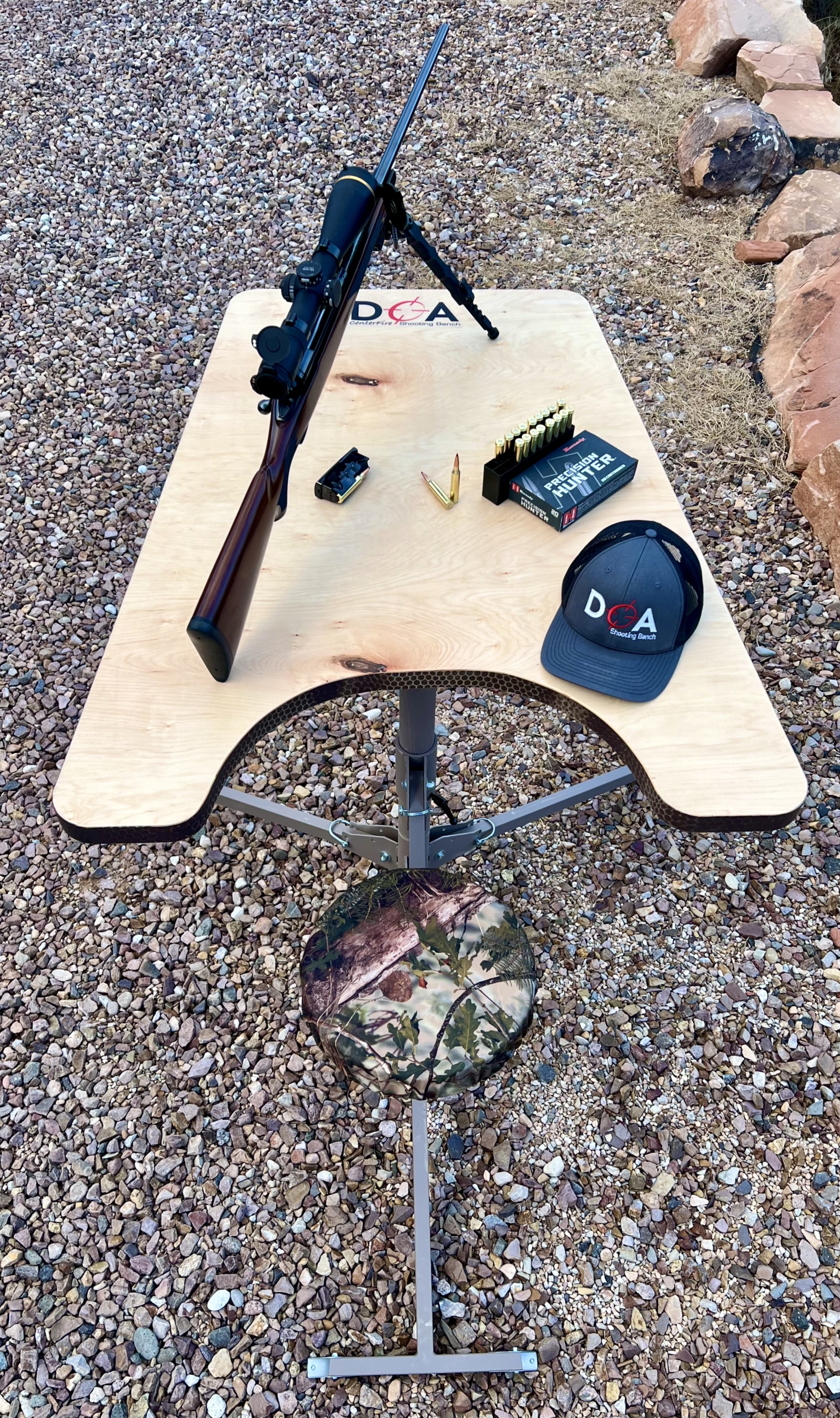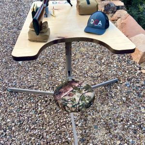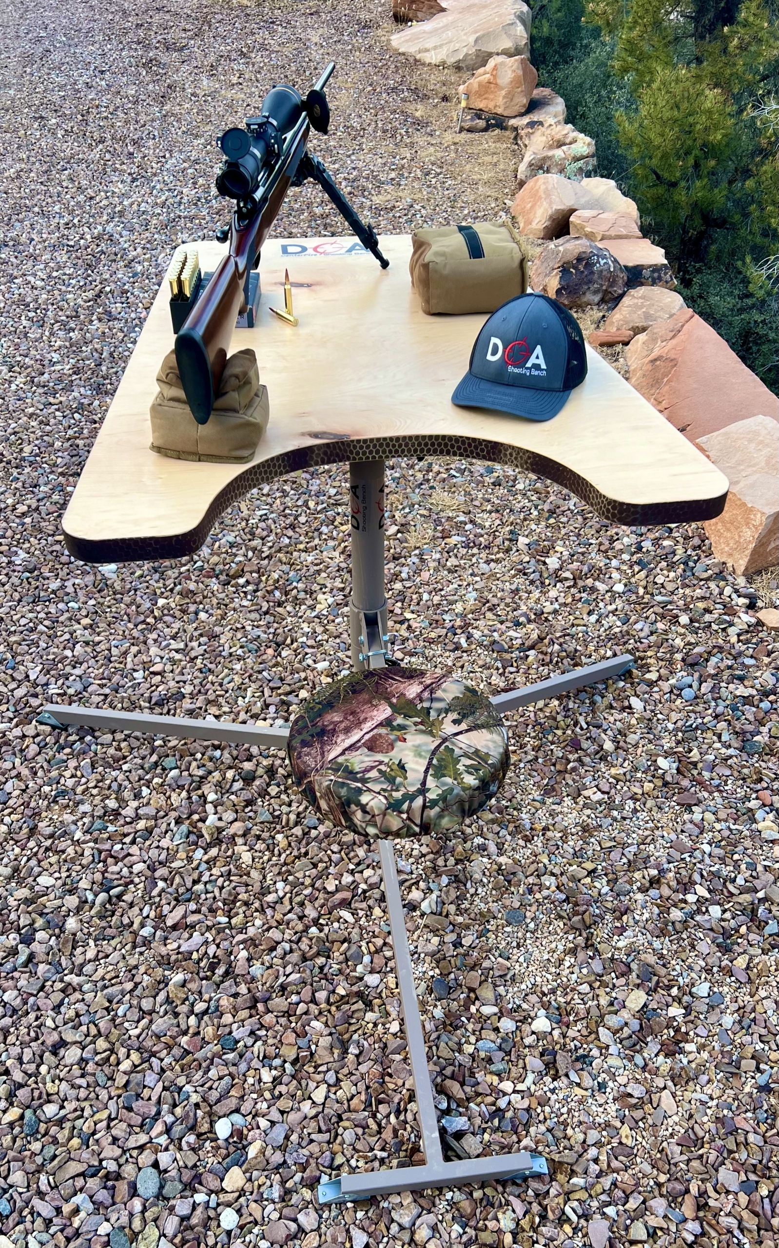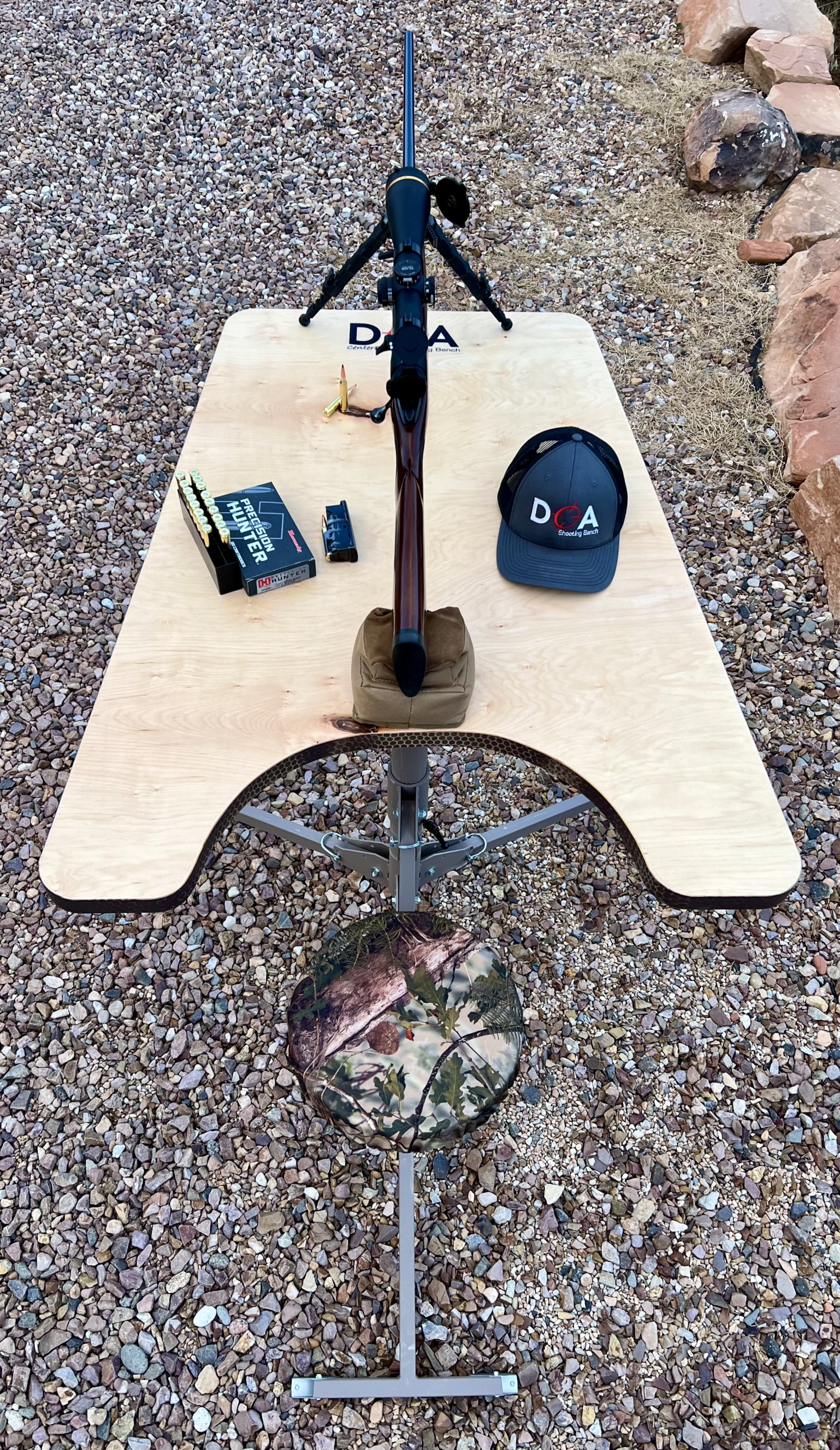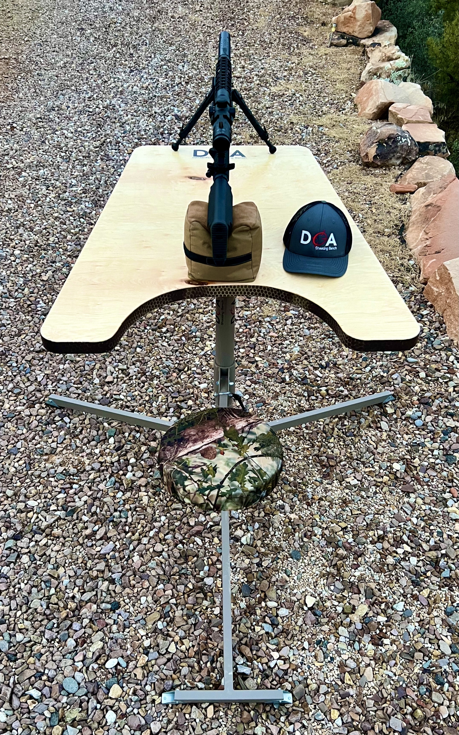 We Symmetrically Widened the surface of our Original Standard DOA Tabletop by about 6 inches, and made a curved chest pocket 9″ deep, giving Right and Left Handed shooters Equal Access to the entire CenterFire Tabletop for all the same firearms enjoyed by our Original Standard DOA Tabletop. Thru the years we had many requests for an Ambidextrous Table that everyone can share and easily take turns shooting on. Prairie Dog hunters in particular will enjoy the ease of sweeping a field of view with this new design.