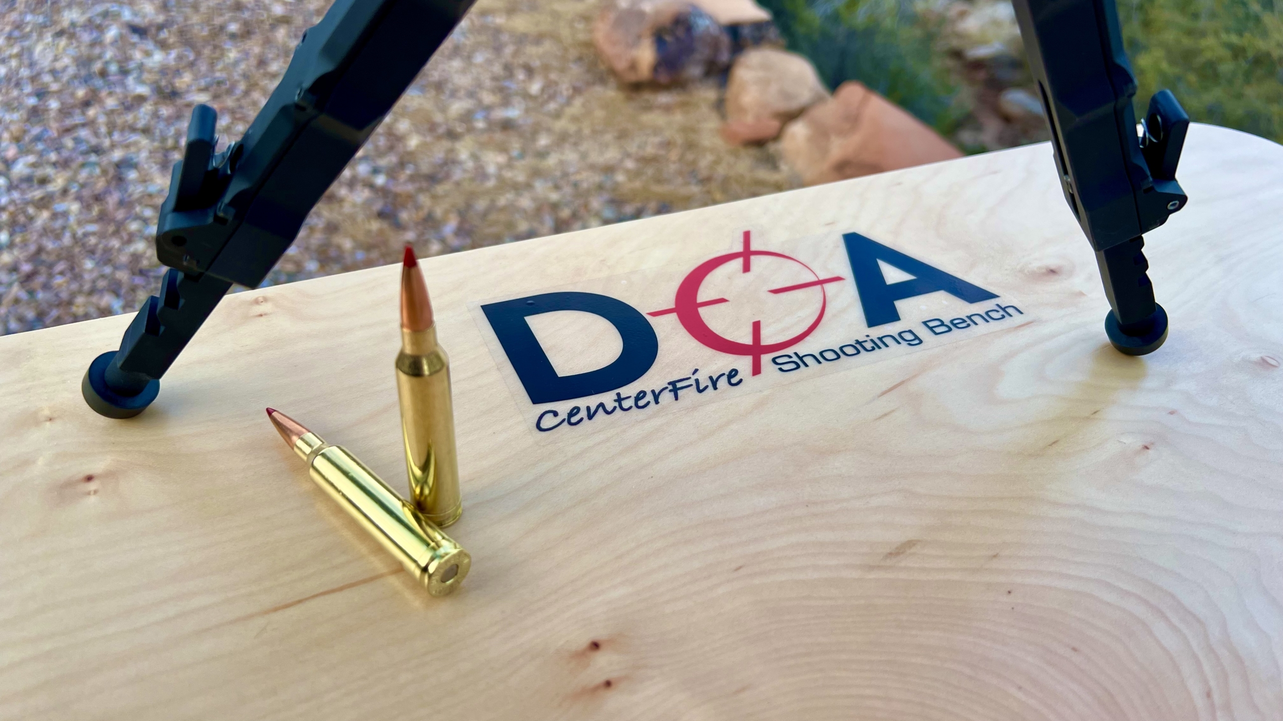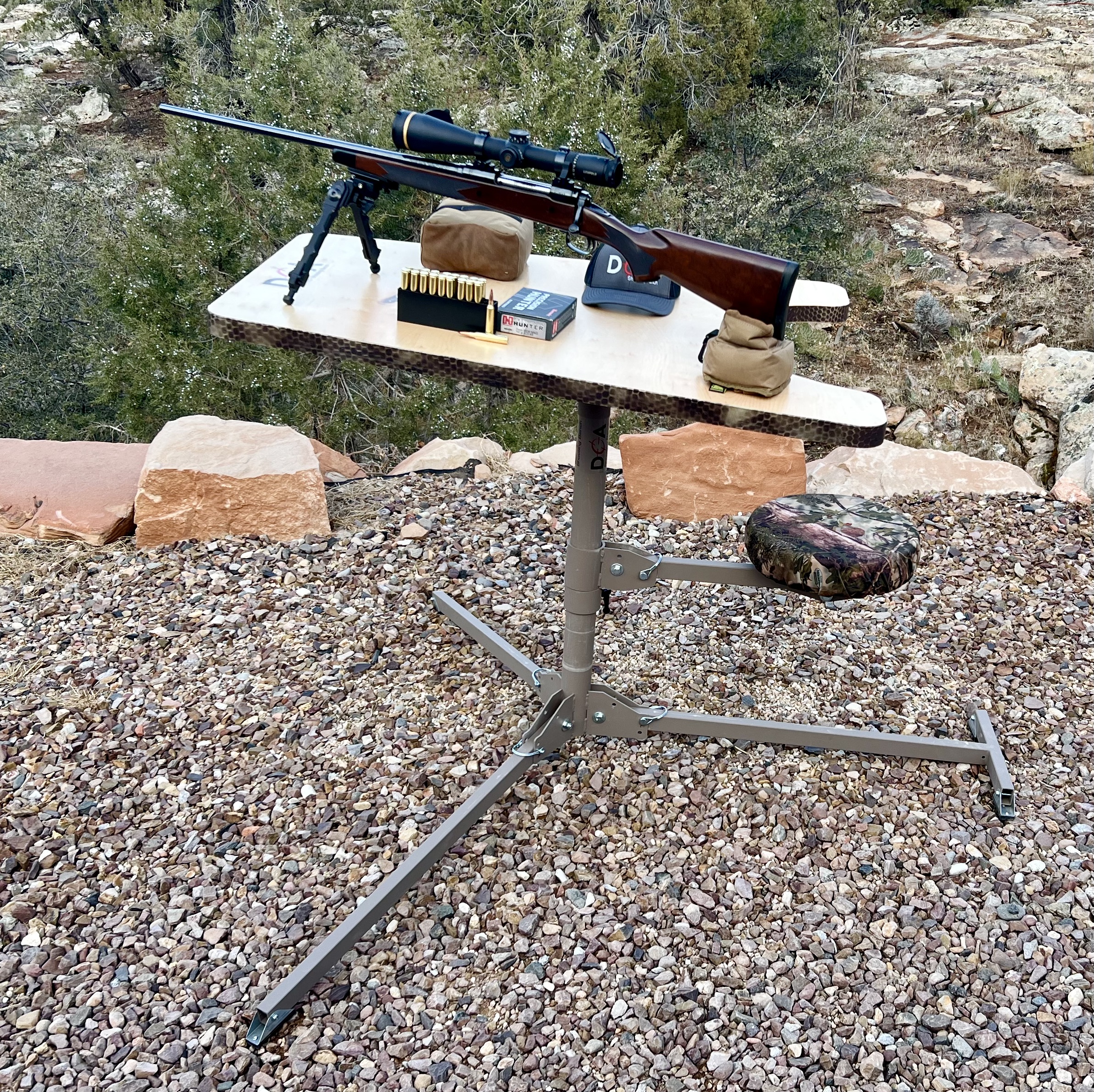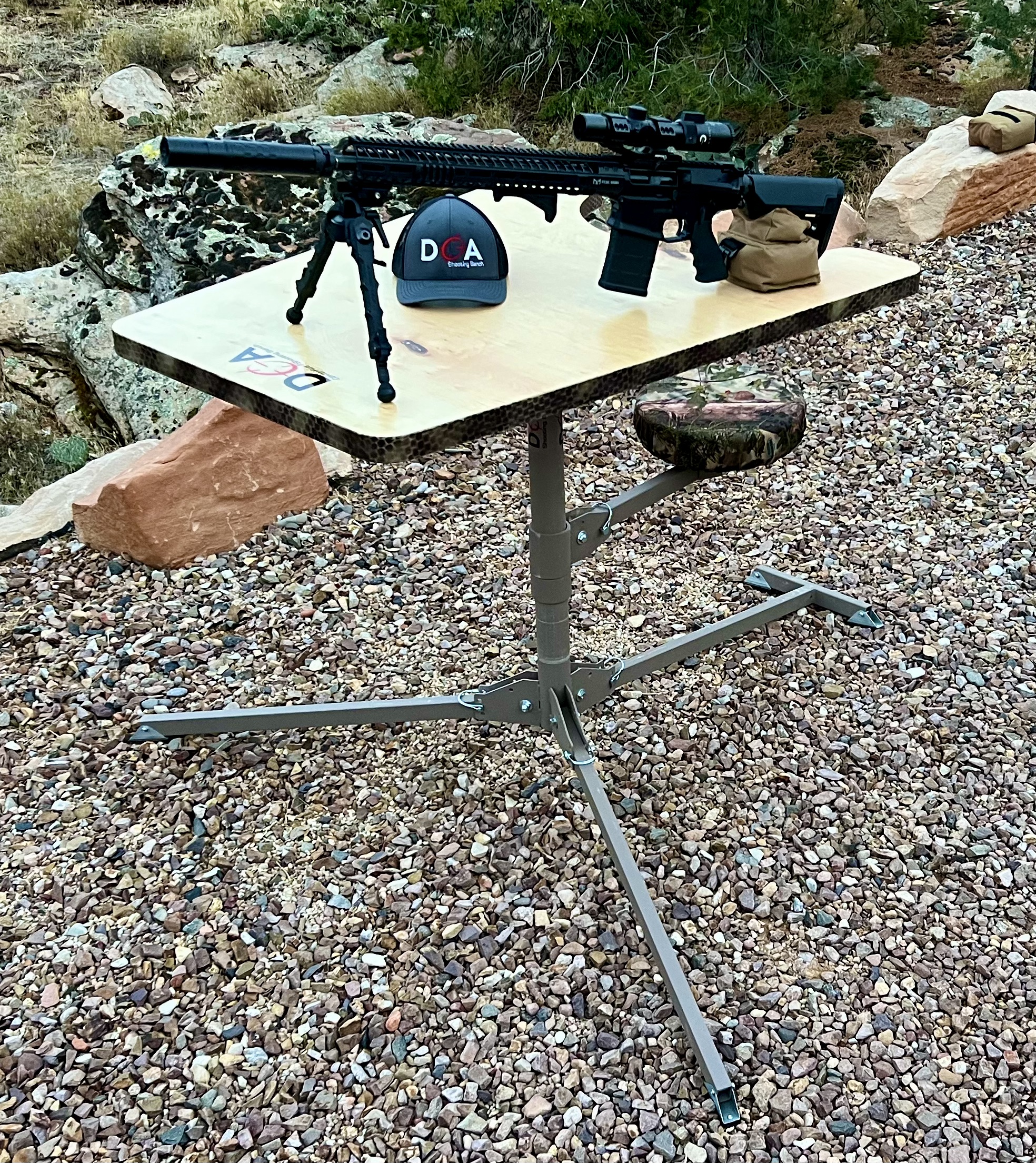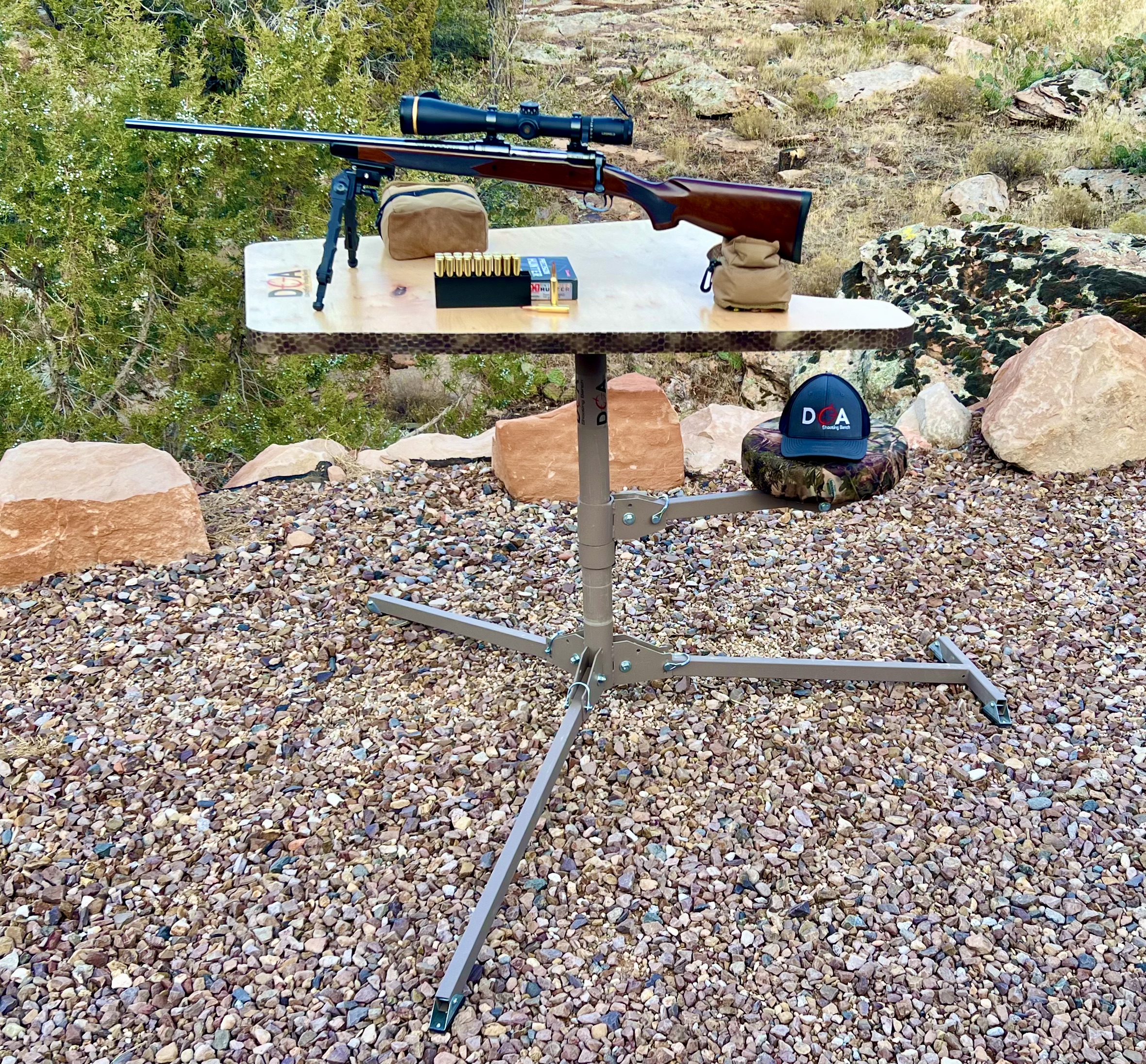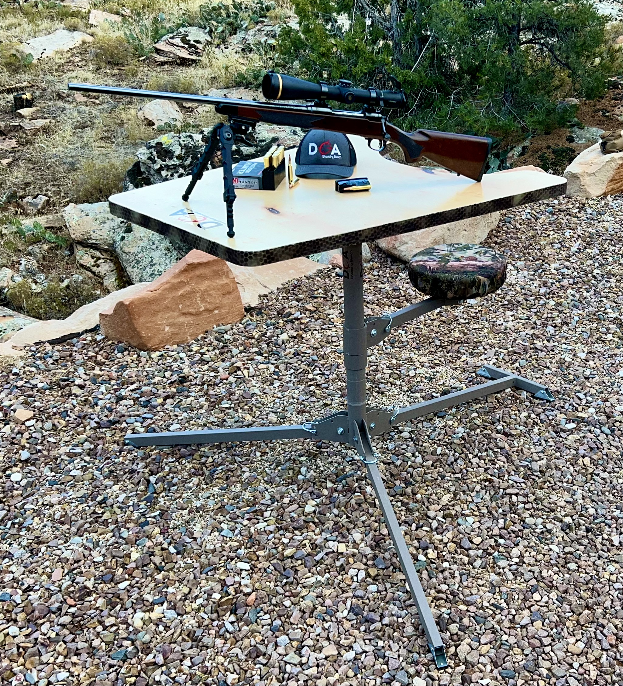 We Symmetrically Widened the surface of our Original Standard DOA Tabletop by about 6 inches, and made a curved chest pocket 9″ deep, giving Right and Left Handed shooters Equal Access to the entire CenterFire Tabletop for all the same firearms enjoyed by our Original Standard DOA Tabletop. Thru the years we had many requests for an Ambidextrous Table that everyone can share and easily take turns shooting on. Prairie Dog hunters in particular will enjoy the ease of sweeping a field of view with this new design.