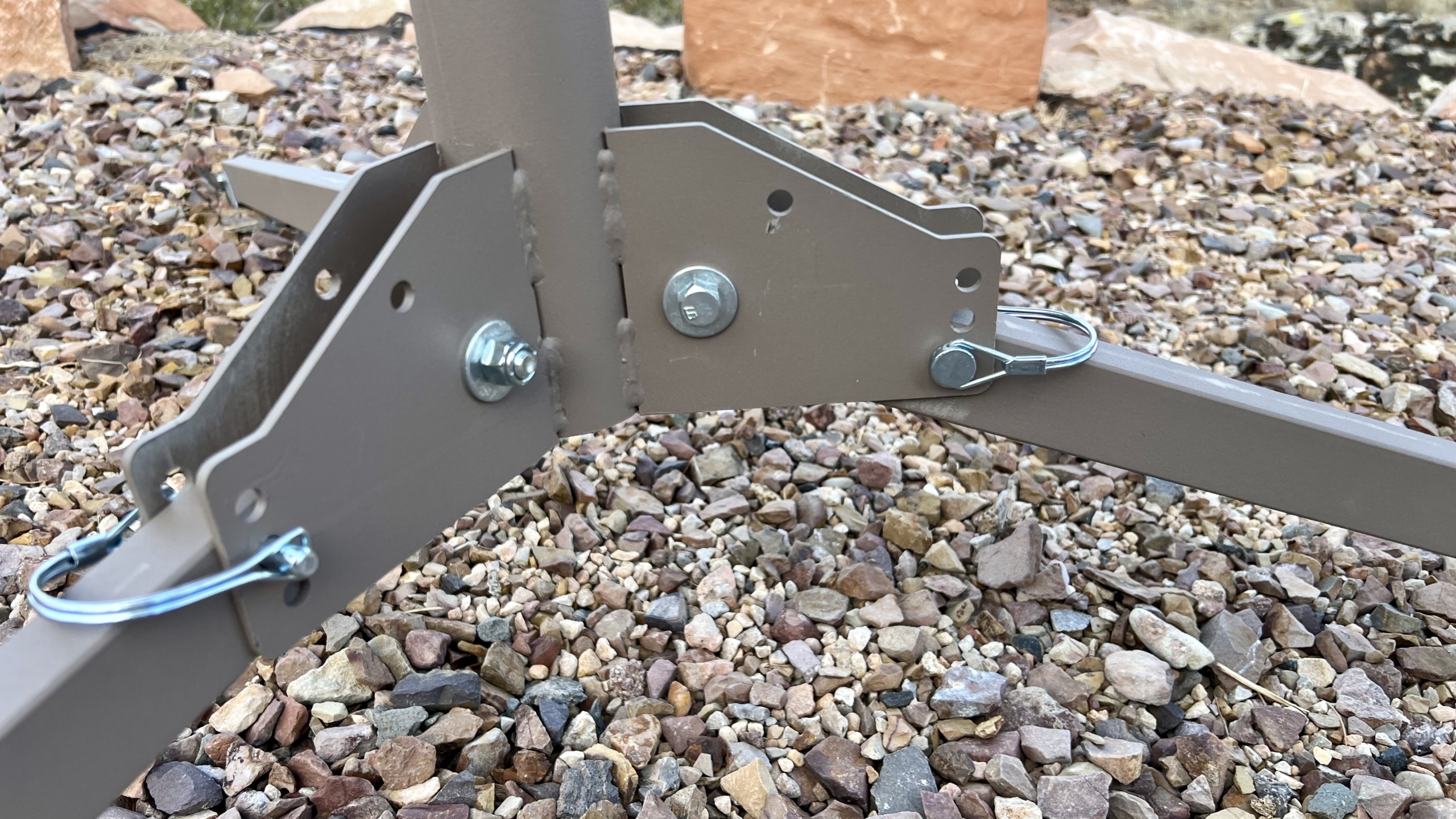 The Tripod measures 32″ tall from the ground with the Legs folded up. It measures 37″ tall from the ground with the Legs extended to the new Center Lock-Pin location, and each Leg can now be adjusted up or down for uneven terrain, or to elevate or lower the entire system +/- 3″.