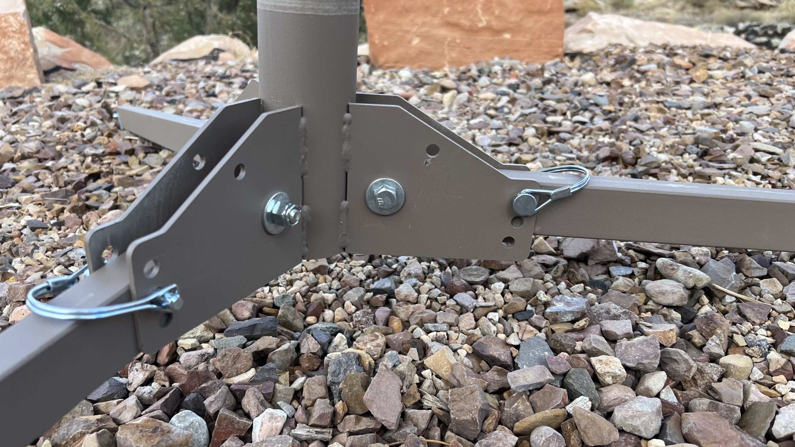 With our improved Matt Tan powder coat finish, the CenterFire Tripod is made out of High Grade Industrial Steel. While there are some lighter materials out there, they tend to flex when the shot is taken; causing the point of impact to shift for each shot. The Tripods are designed to support and hold a 500 lb combined load, and can easily handle a 350 lb man plus gear. Contact us for heavier shooters or special needs. For example, the photos here show the DOA Tripod with our optional “T” shaped Stability 3rd Leg.